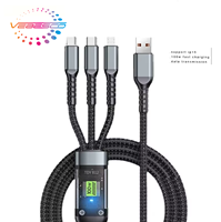 Cable tres en uno de PVC de carga súper rápida de 100W, pantalla Digital transparente, uno a tres Cable móvil de datos, carga rápida 5A