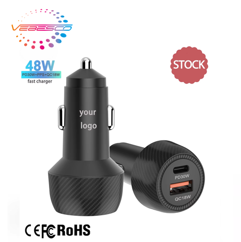 Cargador universal para coche de 48W, tecnología de carga rápida, compatible con 30W USB QC 18W, características QC2.0 SCP PD
