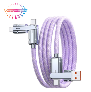 Süper hızlı şarj 6A 2-in-3 inek tarzı kalınlaşmış 100W çok fonksiyonlu veri kablosu ile çinko alaşımlı malzeme